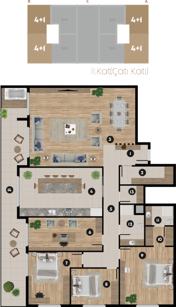 Brüt Toplam: 175,00 m²